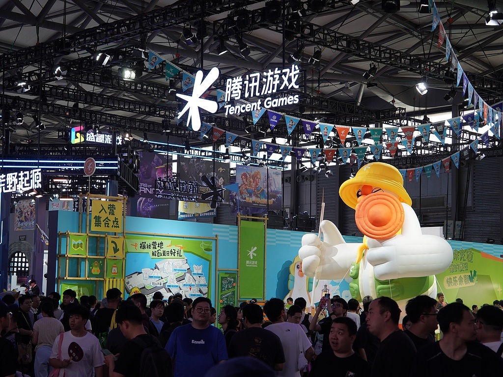 2025年8月1日,上海,ChinaJoy开幕首日,腾讯游戏展台前人潮涌动。视觉中国 图